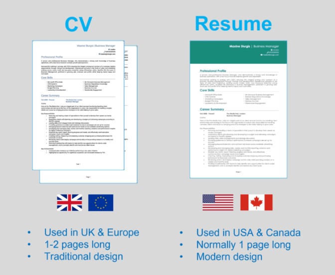 The CV presents a full history of your academic credentials, so the length of the document is variable. In contrast, a resume presents a concise picture of your skills and qualifications for a specific position, so length tends to be shorter and dictated by years of experience (generally 1-2 pages).